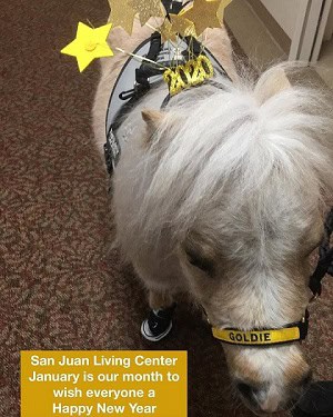 He is a Little Gold Mine, Goldie for short, is a thirteen year old male mini therapy horse. He is one of the original minis that Manette started with in 2017. He is comfortable in all settings: senior care centers, hospitals, schools, and libraries.